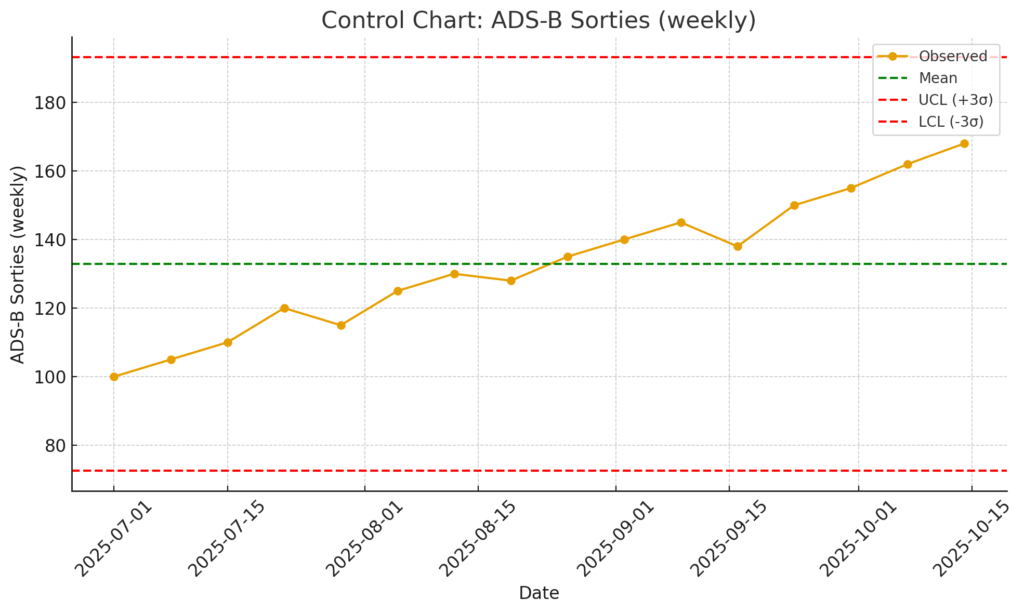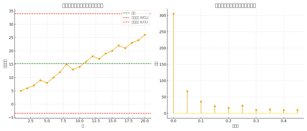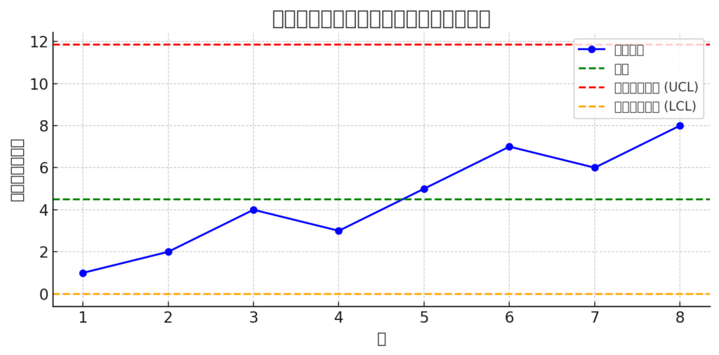 簡易管理図:抗議・混乱事象の週次変動(±3σ線入り。)